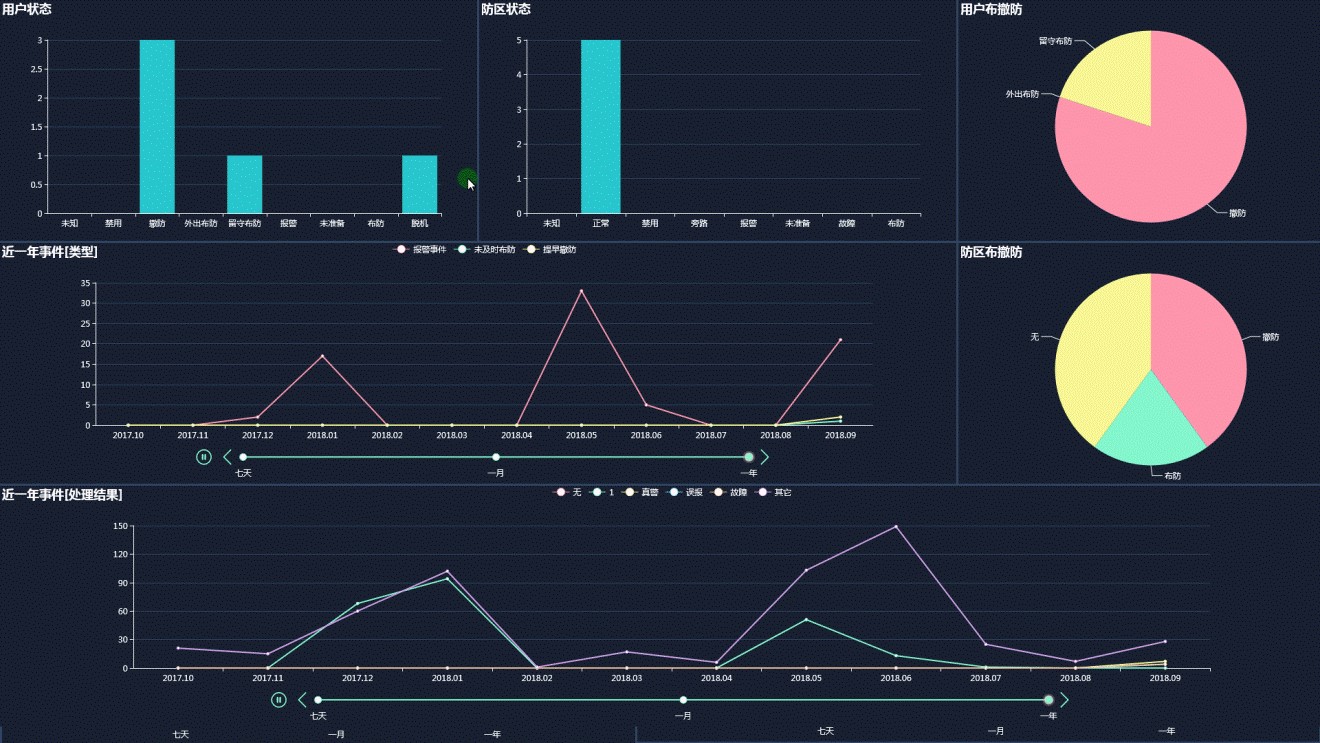 ? 具備報(bào)警系統(tǒng)事件查詢統(tǒng)計(jì)的智能報(bào)表功能,報(bào)表會(huì)隨著報(bào)警用戶及防區(qū)點(diǎn)位狀態(tài)、事件的變化而自動(dòng)實(shí)時(shí)動(dòng)態(tài)更新,令日常操作更加直觀及智能化。